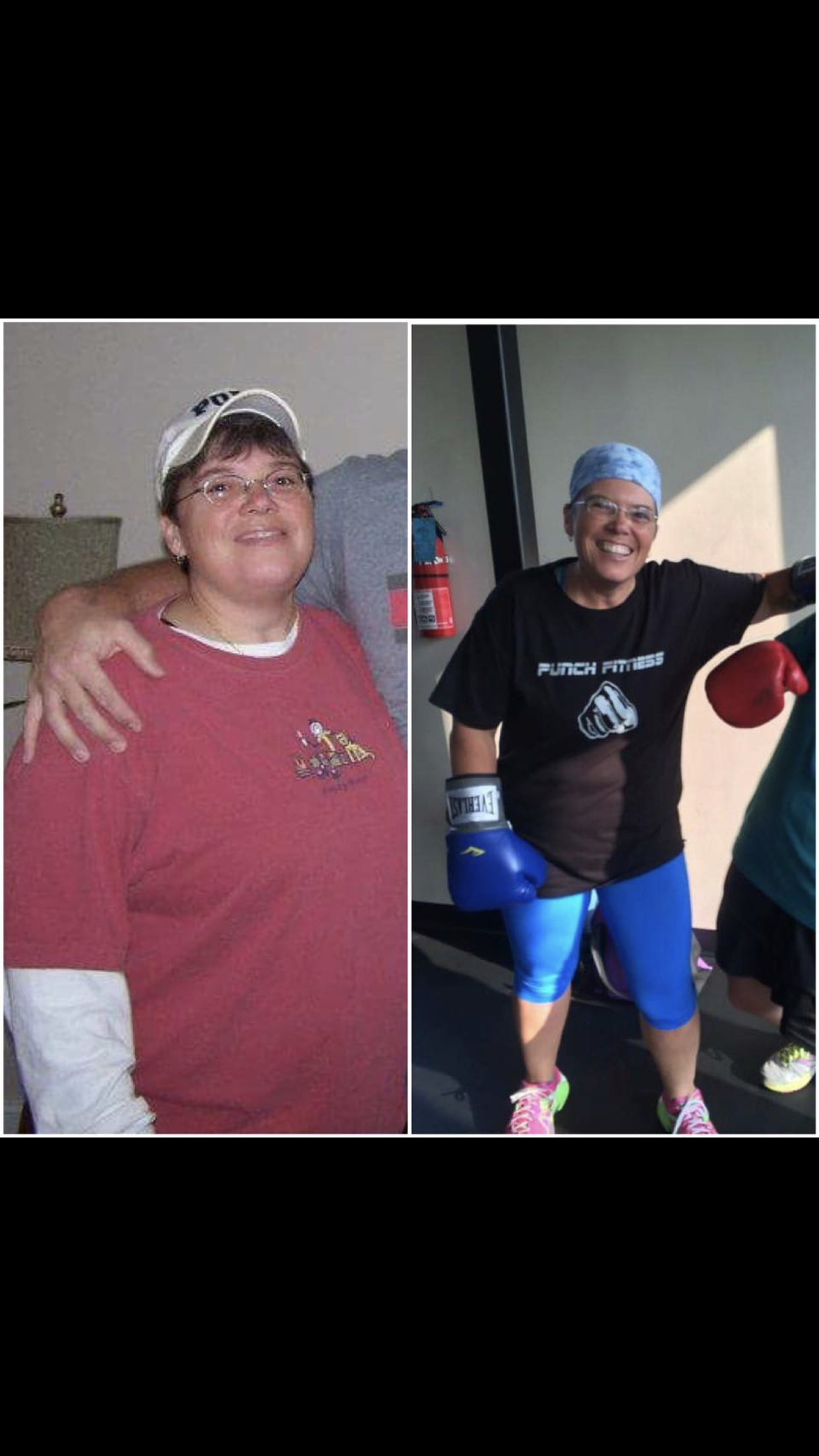 I know this sounds so cliche' but, "If I can do it anyone can." I felt these words 100 + lbs ago when I started my fitness journey at Punch Fitness. I attended boxing 3x per week with the addition of personal training 3 days a week. I cleaned my diet all the way up and only had those foods that bring me joy on Friday night. I eliminated simple sugars and carbs. I ate more veggies, proteins, with complex carbohydrates.